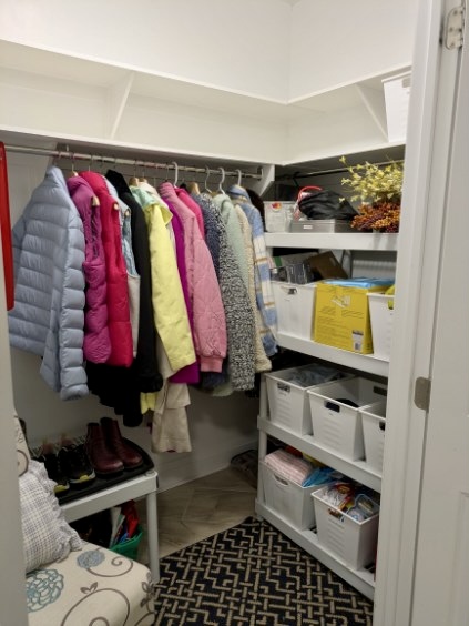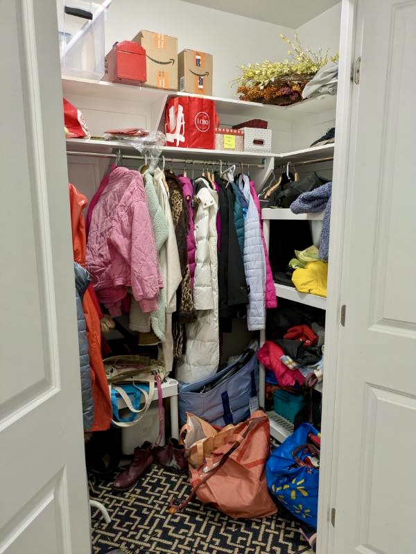 - Ensure hall closet only has current season’s outerwear in it. Move out-of-season items to a labelled storage bin elsewhere